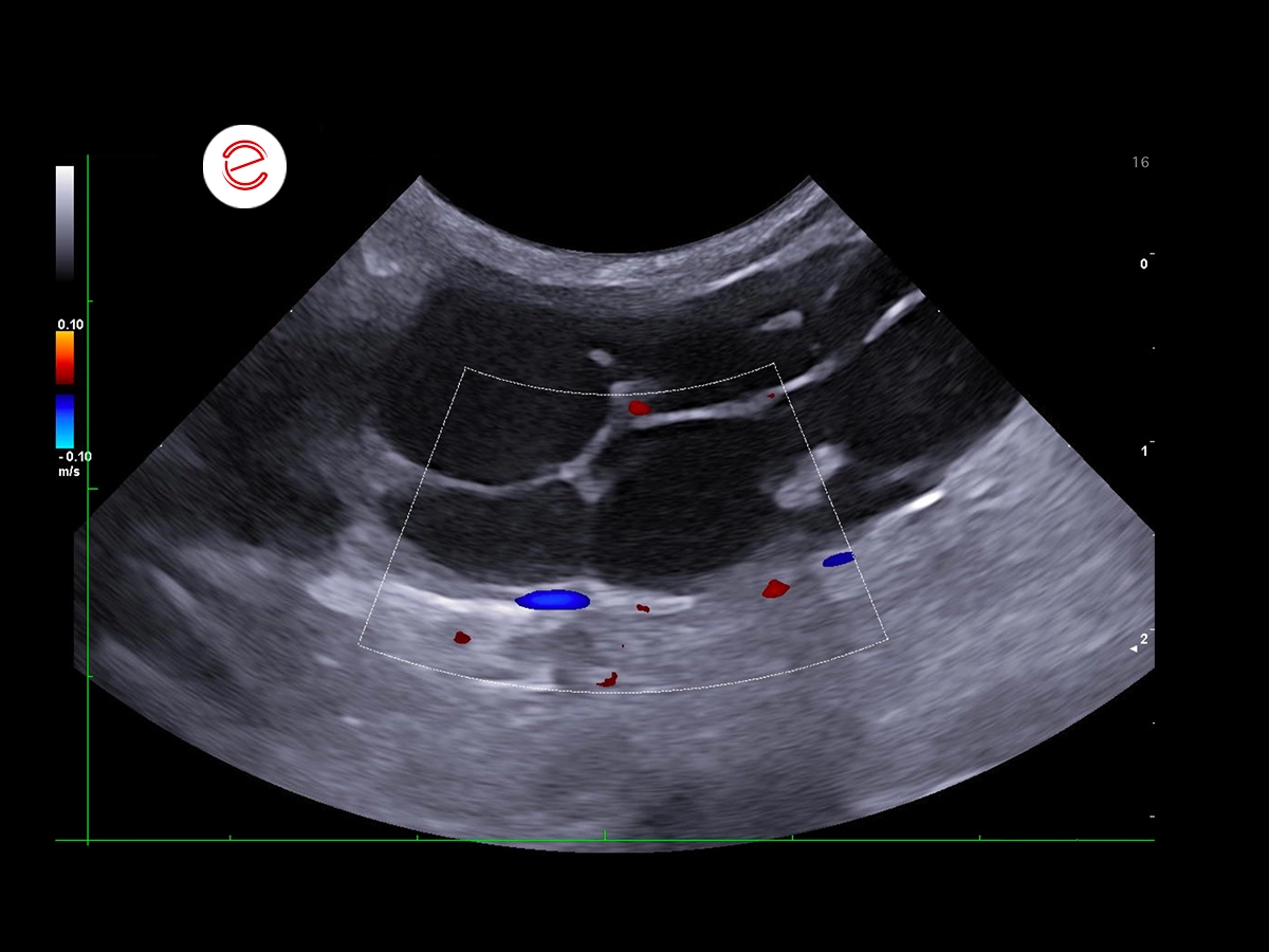 Doppler interrogation showed minimal peripheral vascularization.